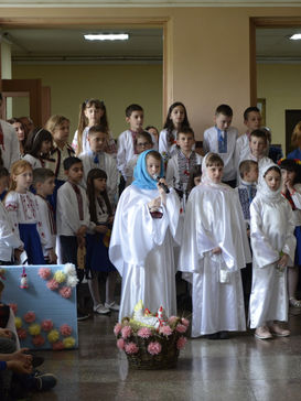 Стало доброю традицією на Великдень проводити виставку пасхальних композицій. Свято прикрасили учні 6-Б класу (класний керівник Роспопа М.Ю.та музичний керівник Бийреш- Романів В.Л.) з літературно- музичною композицією "Великий день Христового Воскресіння!"